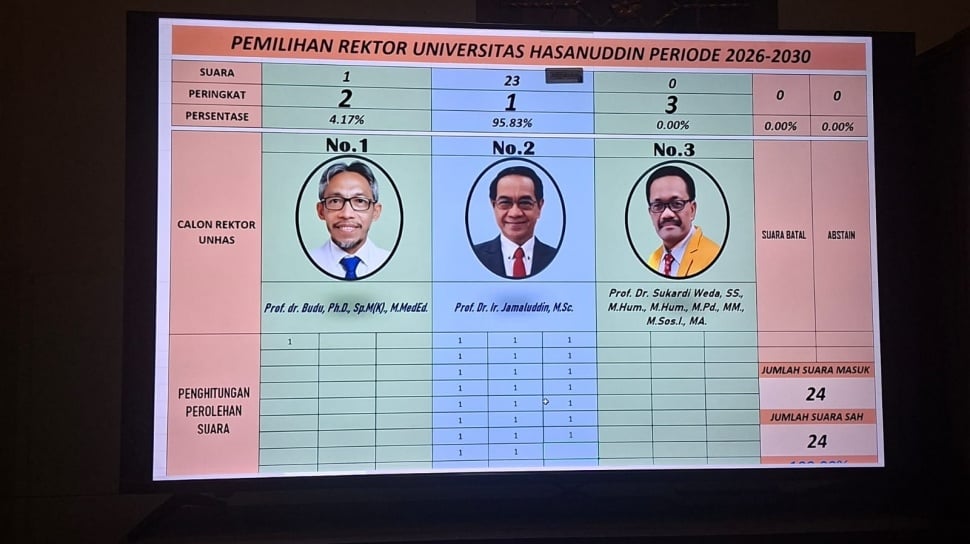SuaraSulsel.id - Pemilihan Rektor Universitas Hasanuddin (Unhas) periode 2026-2030 pada Rabu, 14 Januari 2026 telah dilakukan.
