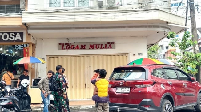 SuaraSulsel.id - Pantauan di lokasi Toko Emas Logam Mulia Makassar, beberapa jam setelah aksi pembakaran oleh pengunjung, Toko Emas Logam Mulia ditutup sementara.