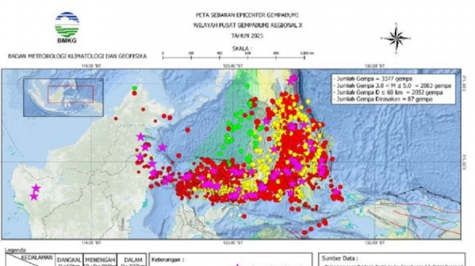 - BMKG Manado mencatat 3.377 gempa tektonik di Sulut sepanjang 2025, didominasi aktivitas dangkal.